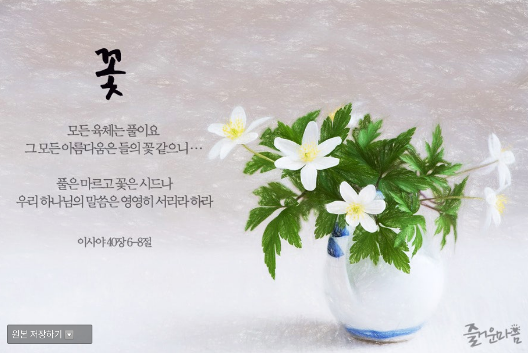 이 땅의 삶이 마쳐지면 아름다웠던 육체는 한 줌 흙으로 돌아가고, 풀은 마르는 것처럼 잠시 있다 없어지지만 하나님의 말씀은 세세토록 있으며 아름다운 구원의 소식을 전하는 복음의 말씀은 살아있다고 하셨습니다.