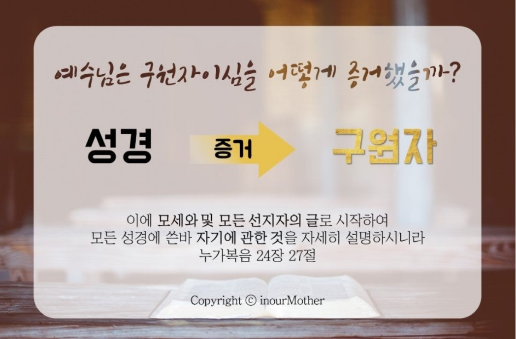 예수님께서는 성경이 구원자를 증거 하는 책이라 하셨고, 성경을 살펴보는 목적도 인류에게 영생 주시는 구원자를 발견하고 영접하기를 원하셨습니다. 따라서 성경에서 증거 받으신 하나님에 대해 살펴보겠습니다.