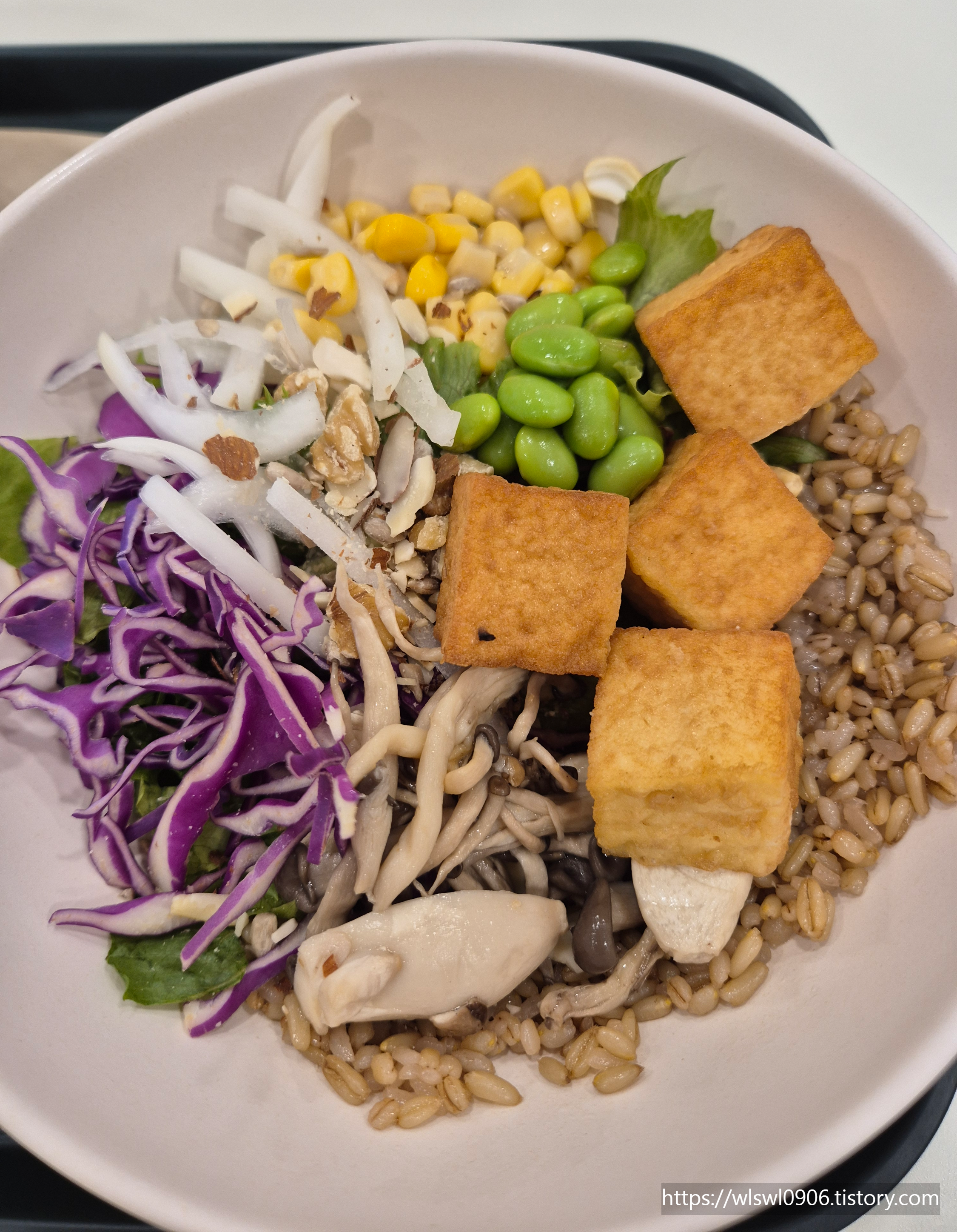 먹어보니 쫄깃한 버섯에 통곡물밥이 들아가서 든든함도 더해졌어요.