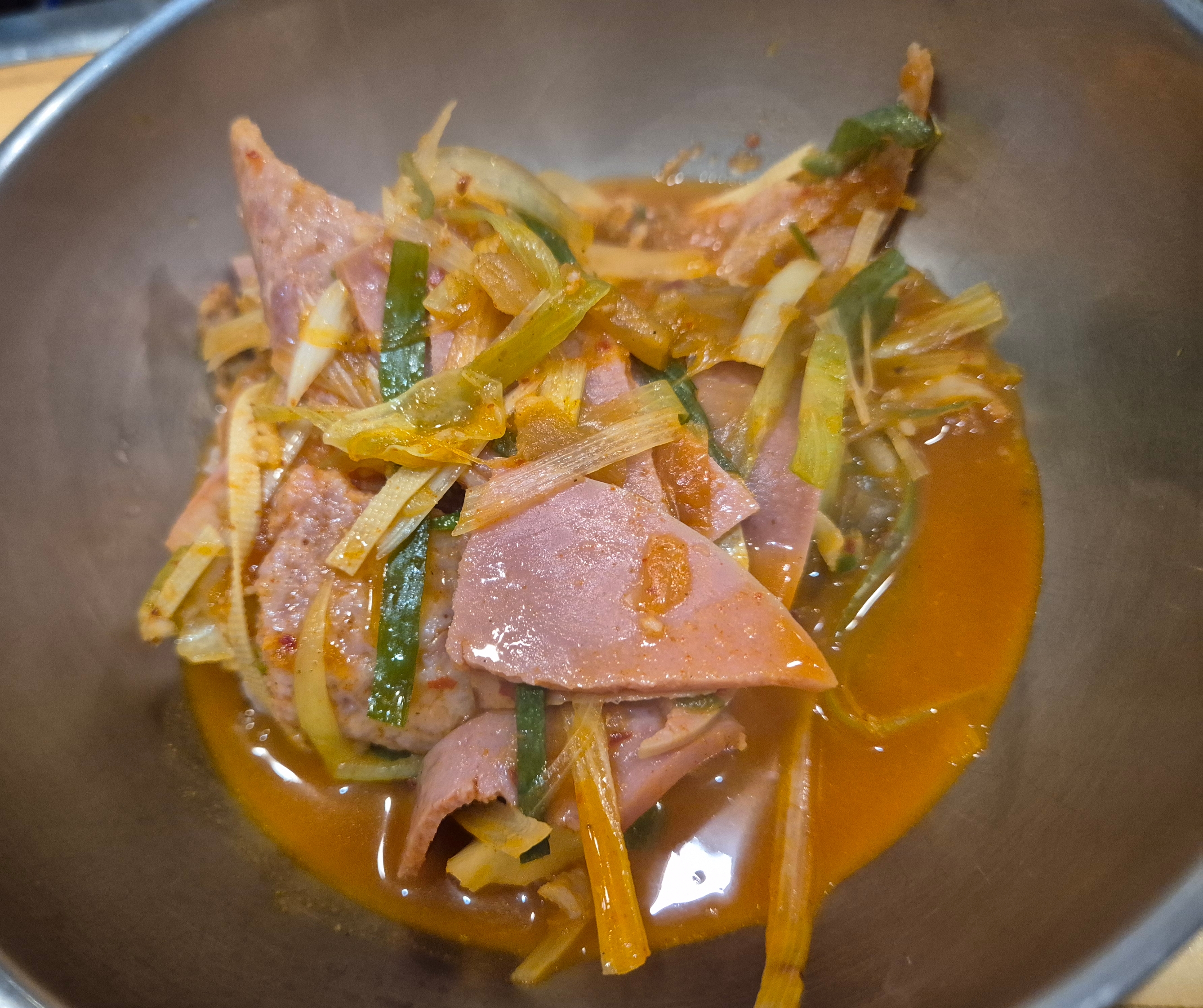 햄이 많을 넣어주셔서 그런가 살짝 제가 먹기엔 간이 짜서 육수를 더 갖다 부었네요.