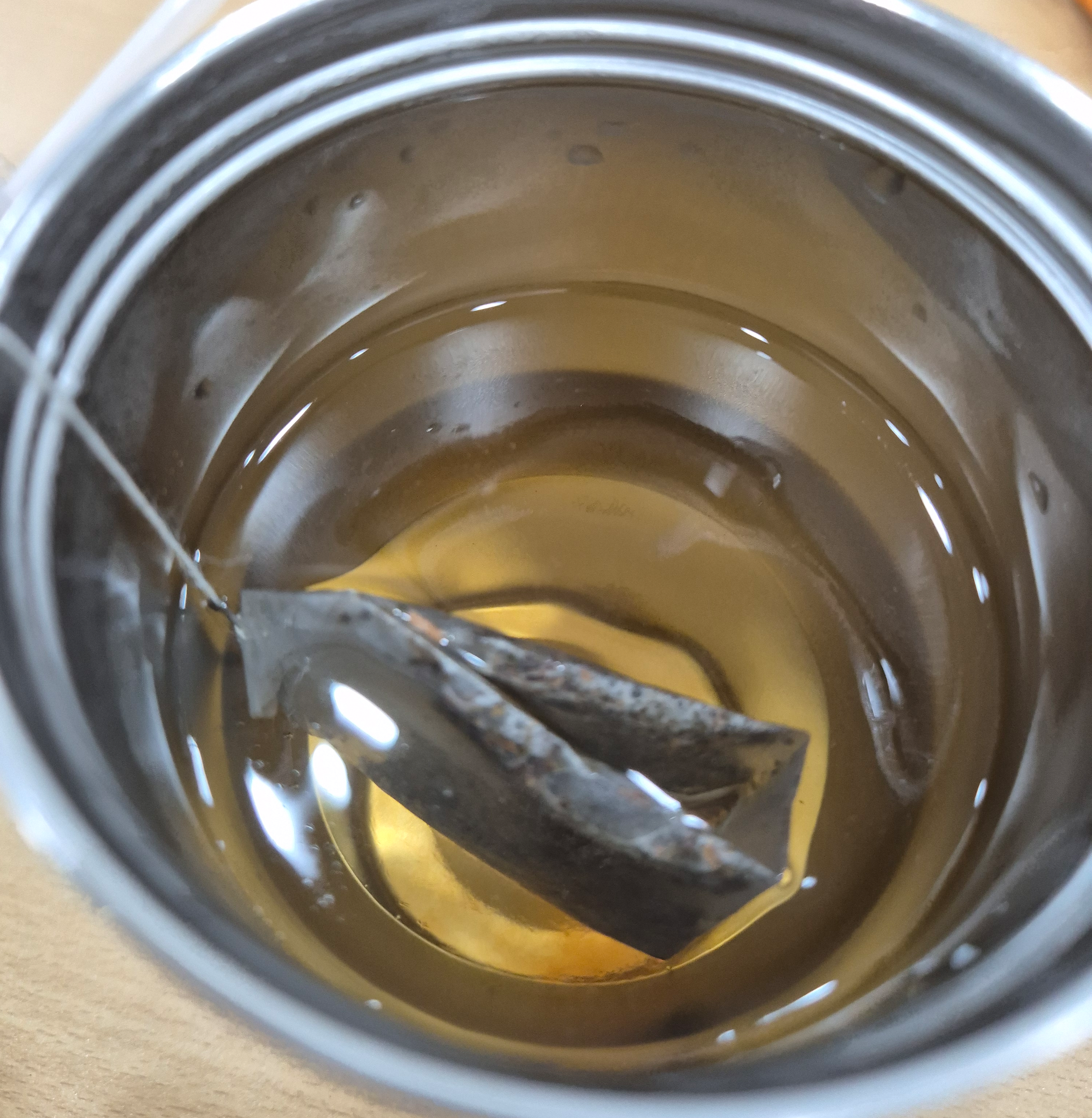 500리터 텀블러에 따뜻한 물을 넣고 티백하나 넣었는데