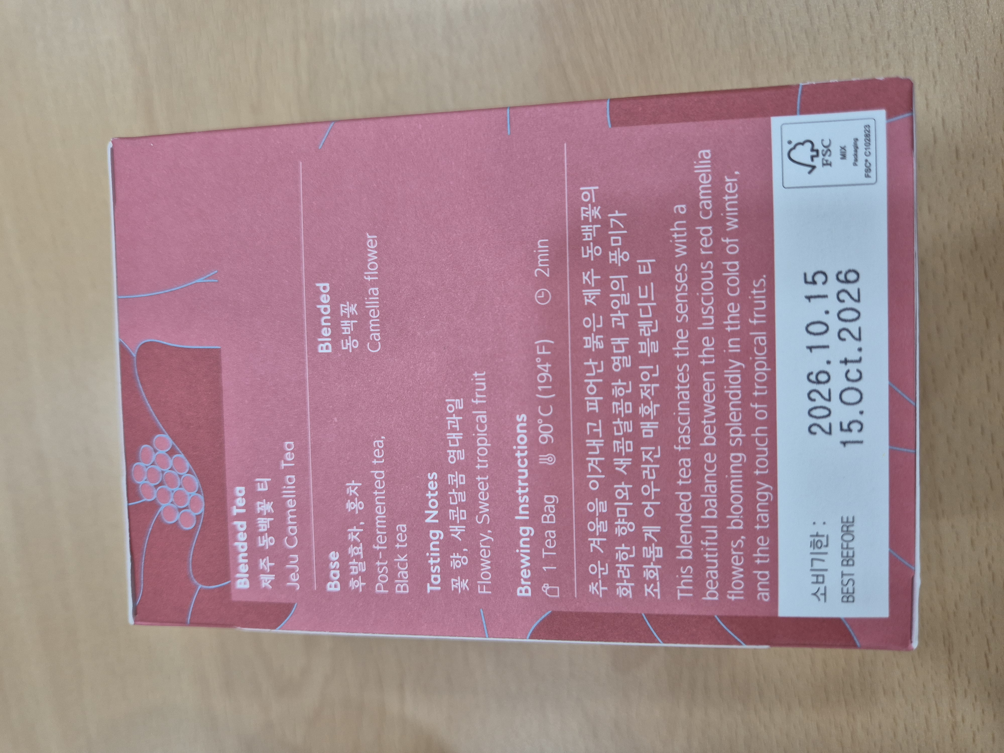 지인이 제주도 여행 갔다가 선물이라고 사다 준 제주 동백꽃티인데요,