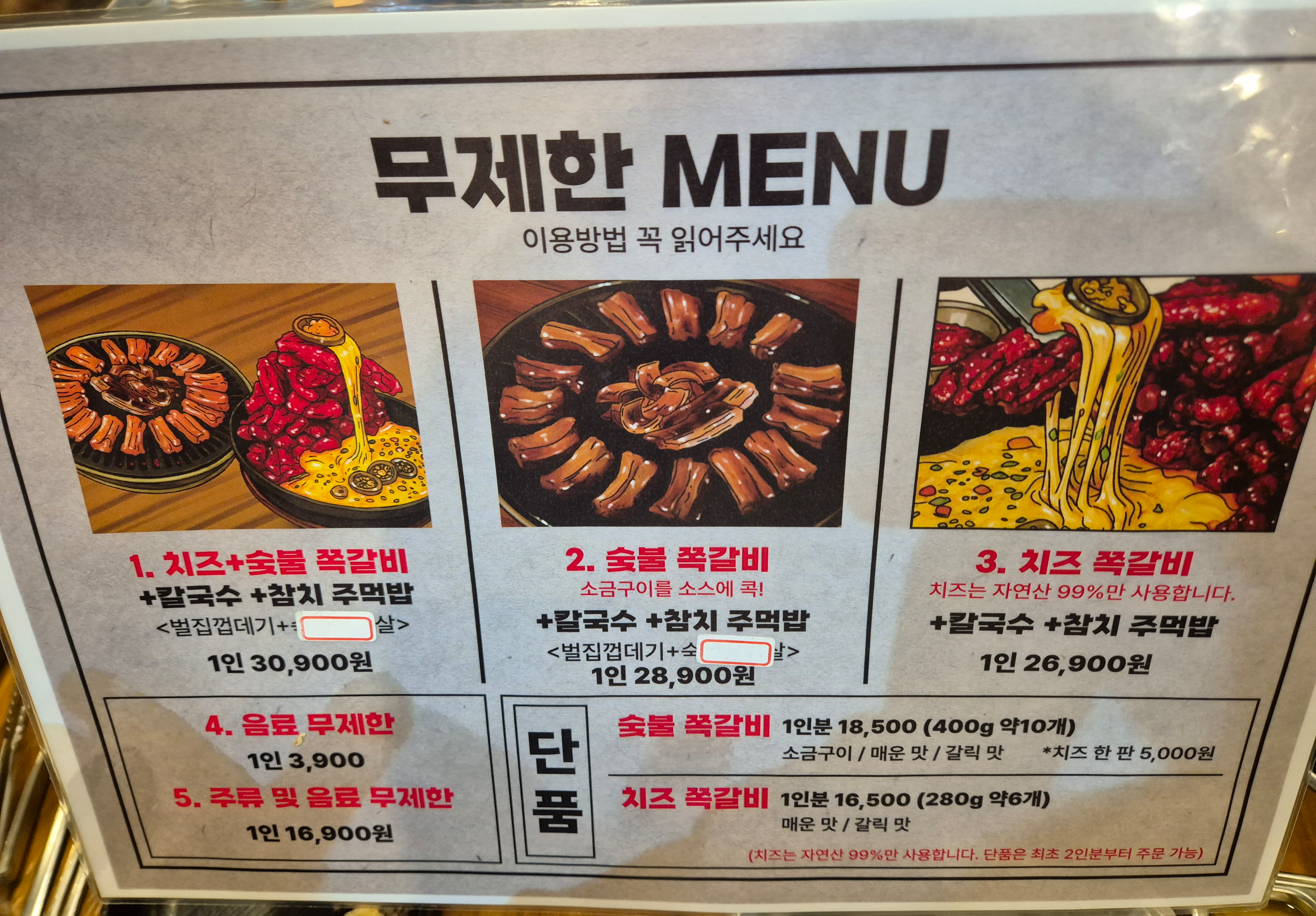 치즈 쪽갈비+ 숯불 쪽갈비 +칼국수+참치 주먹밥+벌집껍데기