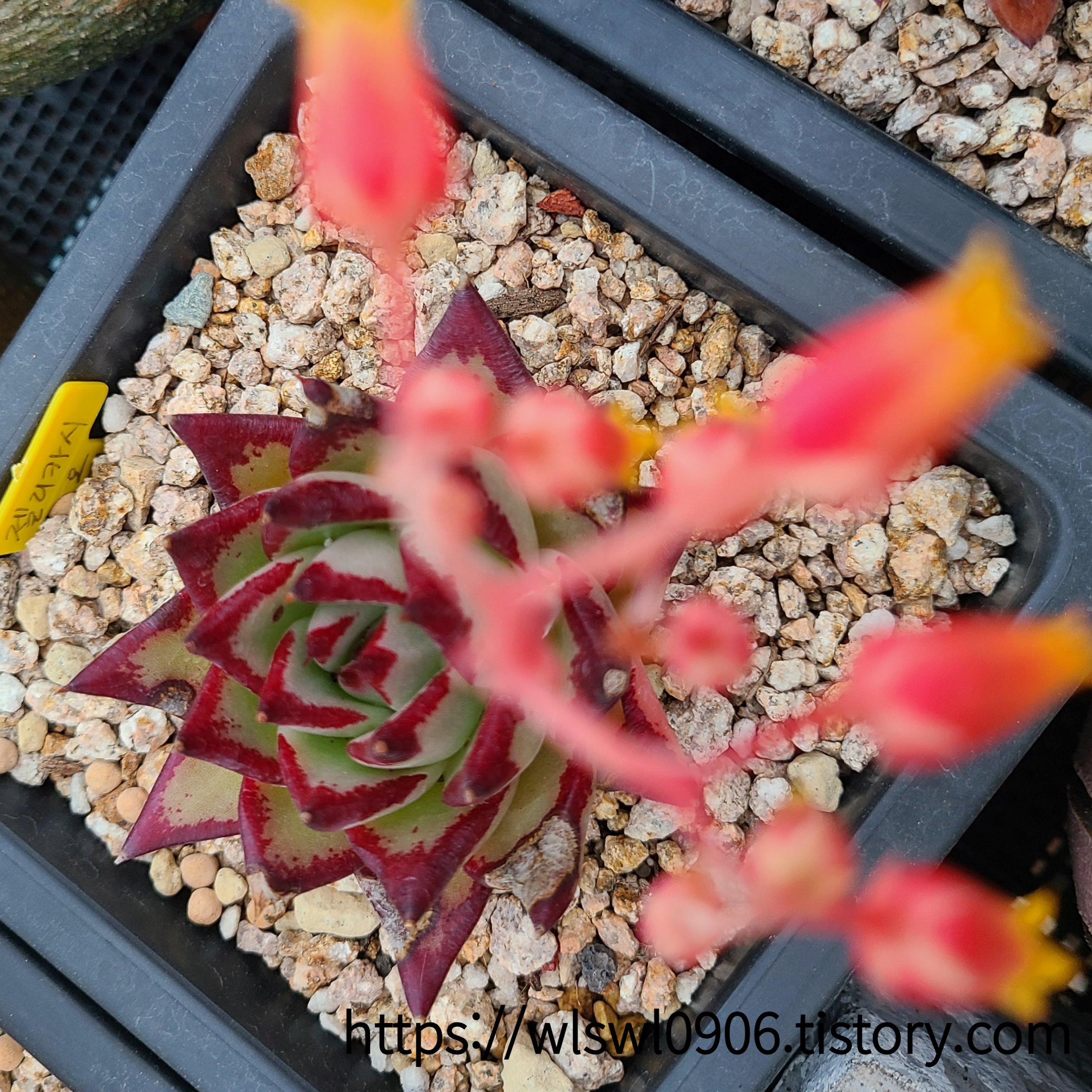 잎장부분이 붉은색 테두리로 라인이 참 아름다운 다육이랍니다.