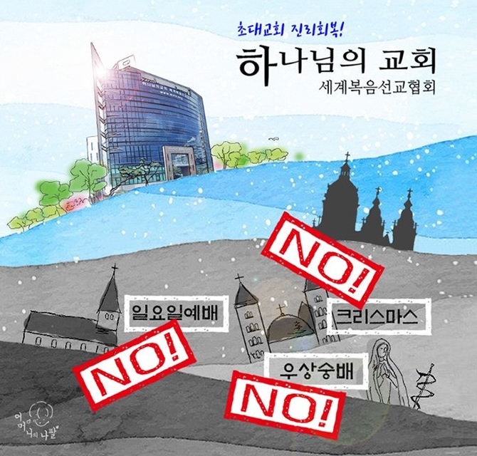 1964년 하나님의 교회를 설립하시고 사라졌던 새 언약의 진리, 안식일과 수건규례, 3차의 7개 절기를 전부 회복하여 주시고 구원의 축복을 주신 분이 바로 안상홍님이십니다. 엉뚱한 곳에 가서 하나님께 복 달라하지 말고 성경 중심의 신앙을 하는 참진리교회로 오세요.