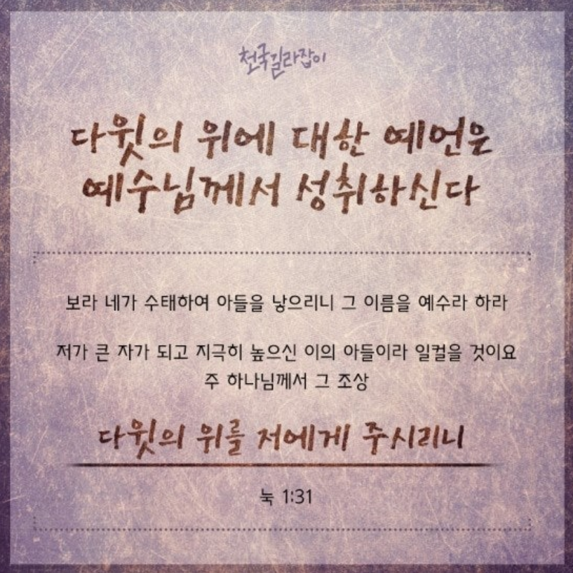 이사야 예언대로 아기, 아들로 태어나신 하나님은 에수님이시며 다윗의 위에 앉으신다고 하셨습니다. 과연 예수님께서 다윗의 위로 오셨는지 신약 성경을 통해 살펴보겠습니다.