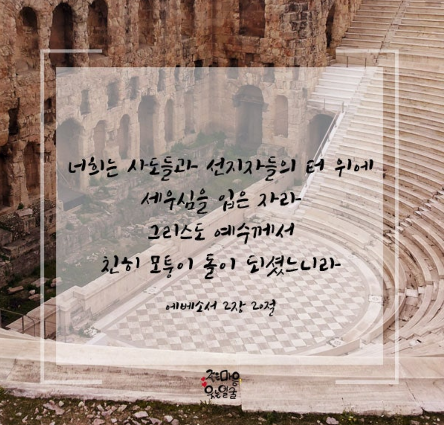 너희는 사도들과 선지자들의 터 위에 세우심을 입은 자라 그리스도 예수께서 친히 모퉁이 돌이 되셨느니라